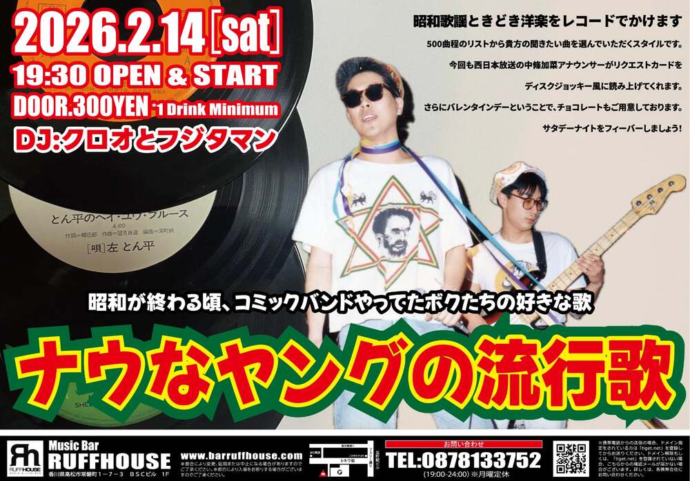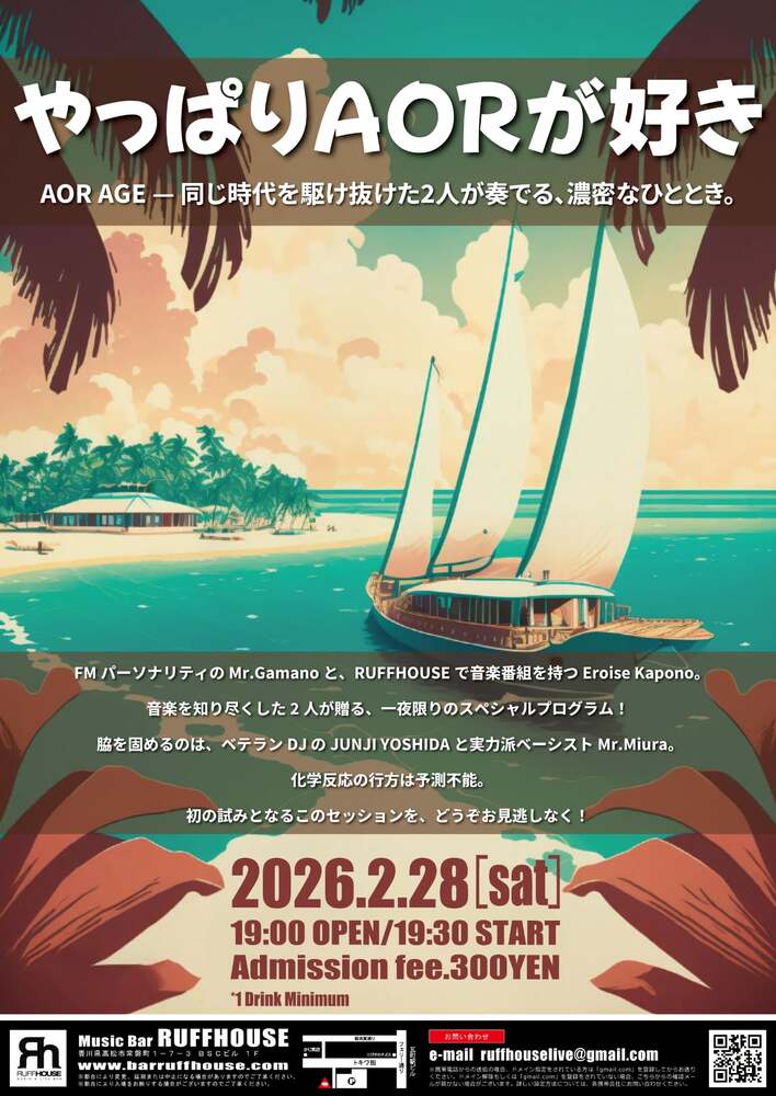 イベントスケジュールを更新 更新情報 イベント RUFFHOUSE 2026/01/14 18:15 フォロー 2月に1階 Music Bar RUFFHOUSEにて<DJイベント> 「やっぱりAORが好き」 を追加。詳しくは、スケジュールをご覧ください。 URLをコピーする 報告する